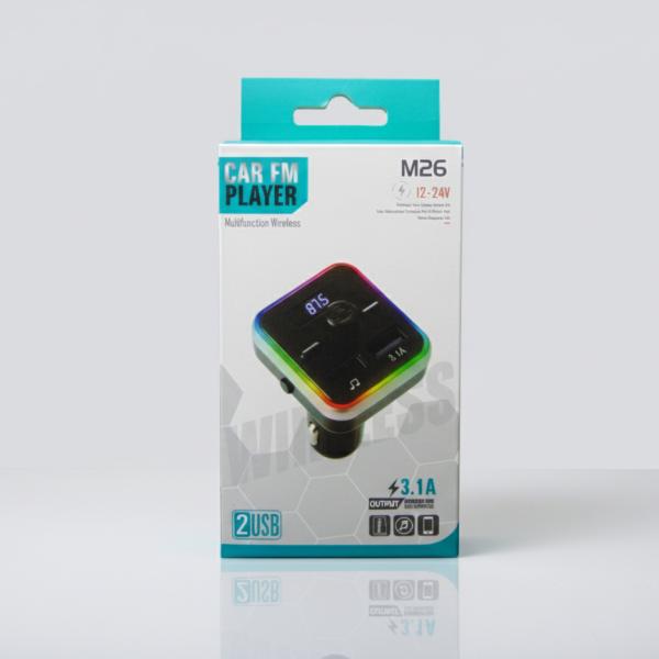 El transmisor vehicular M26 es la herramienta perfecta para llevar tu música favorita a tu auto sin complicaciones. Con conectividad Bluetooth, simplemente conéctalo al encendedor de tu vehículo y empieza a disfrutar de audio de alta calidad ????. Su diseño compacto permite colocarlo fácilmente en cualquier espacio y su funcionamiento es intuitivo, ideal para quienes buscan disfrutar de su música mientras conducen.
