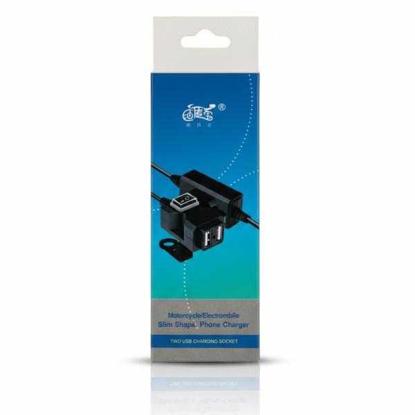 Cargador para moto CD3021 con 2 puertos USB, diseñado para motociclistas que necesitan cargar sus dispositivos mientras conducen ??. Este cargador es ideal para smartphones y GPS, asegurando que tus dispositivos estén siempre funcionales en todo momento. Con su diseño práctico y eficiente, te permite mantenerte conectado, sin importar en qué parte del camino te encuentres.