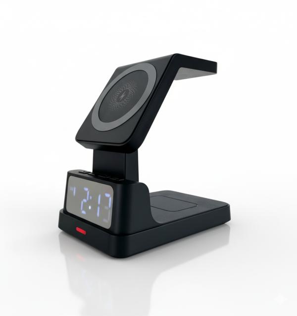 Cargador de base 3 en 1 que permite cargar múltiples dispositivos simultáneamente, ideal para simplificar tu espacio y mantener todo organizado ????. Perfecto para el hogar o la oficina, este cargador garantiza que nunca más te quedarás sin batería, facilitando una carga rápida y eficiente de tus accesorios.