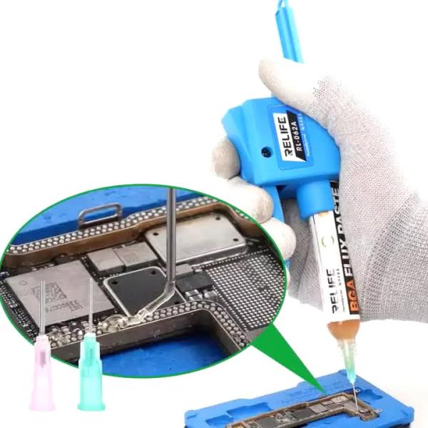 Dispensador de flux RL 062A, una herramienta esencial para técnicos en electrónica. Diseñado para aplicar flux de manera precisa y controlada, este dispensador facilita la soldadura y mejora la calidad de las uniones. Su diseño ergonómico permite un uso cómodo y efectivo en cualquier proyecto. ????? Ideal para quienes buscan eficiencia en sus trabajos de reparación.