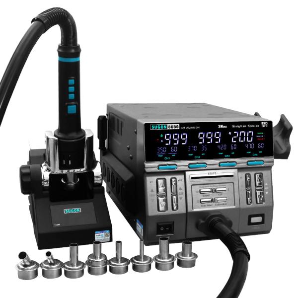 Estación de calor Sugon 8630 Pro, una herramienta de alta gama diseñada para satisfacer las exigencias de los profesionales en electrónica. Posee control preciso de temperatura y flujo de aire, ideal para soldar y desoldar componentes con eficiencia y seguridad. Su robustez y versatilidad la hacen indispensable en cualquier taller. ????